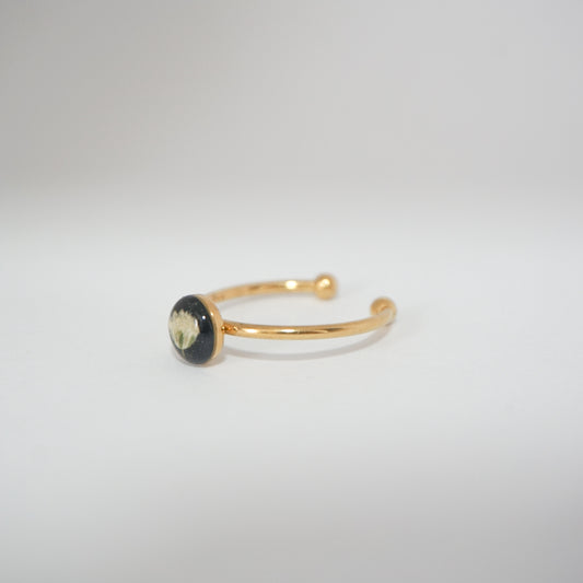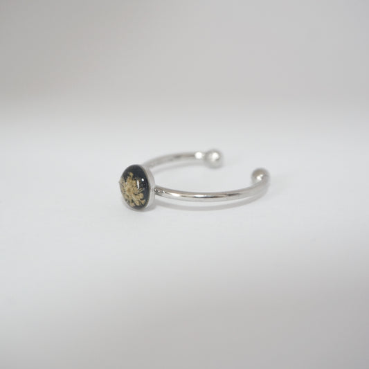 Anillo ajustable flor del cilantro fondo negro