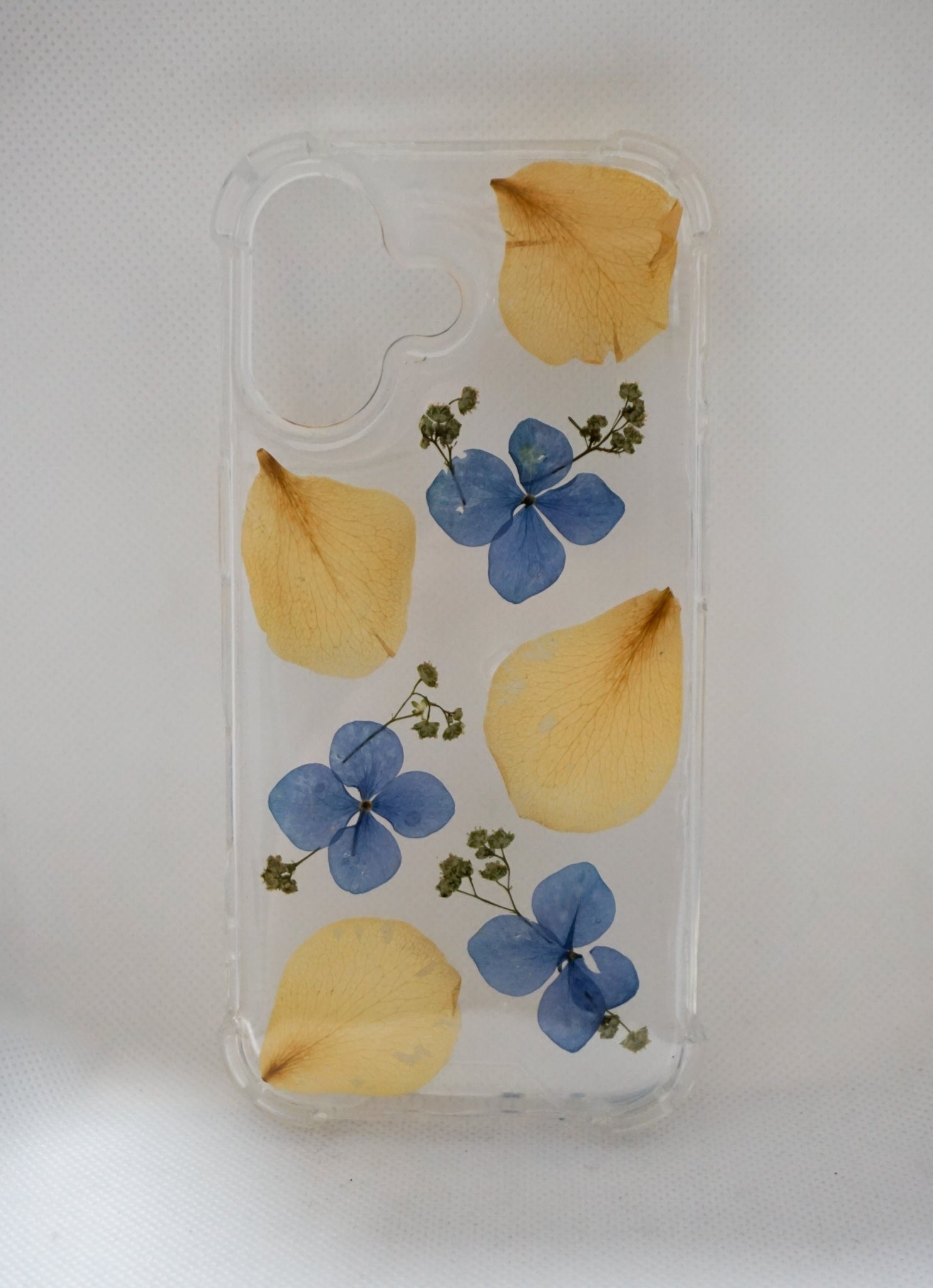 iPhone 17 Hortensias y pétalos de rosa amarillos